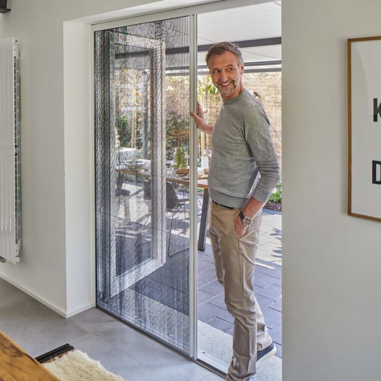 Platzsparend und elegant. Das seitlich verschiebbare Insektenschutz-Plissee eignet sich besonders für Terrassen- und Balkontüren.